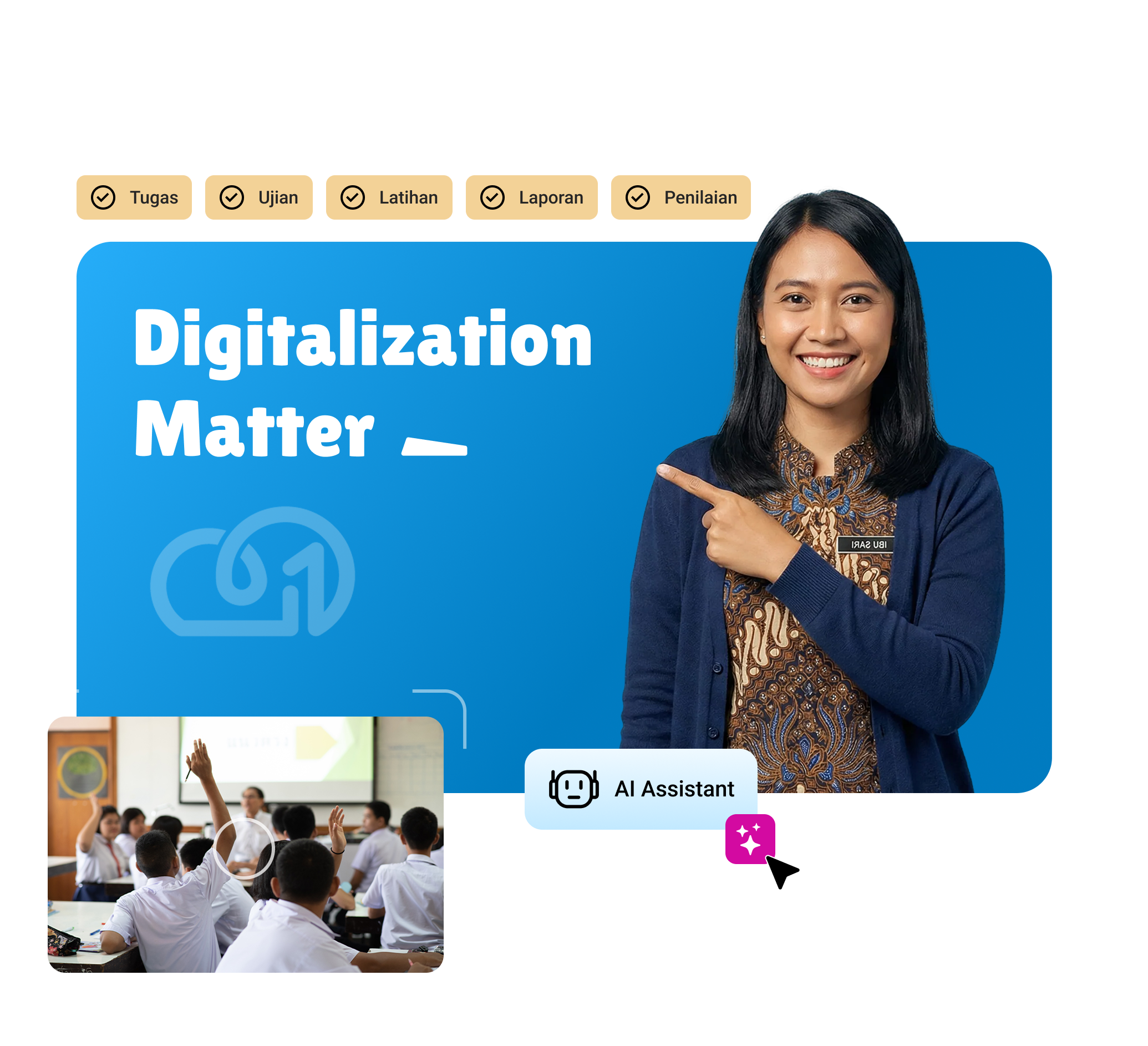 Pantau progres, nilai, dan tingkat pemahaman siswa hanya dalam satu dashboard yang intuitif.